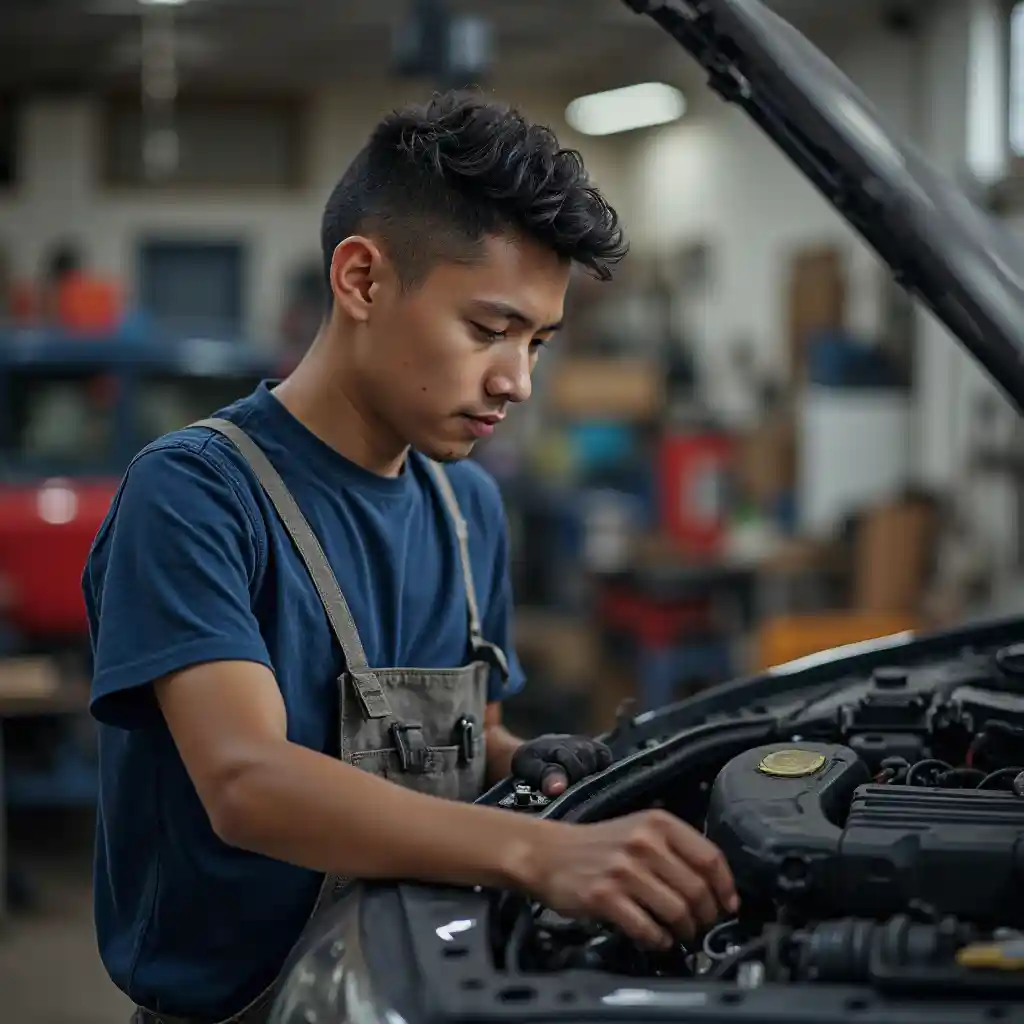 Safari ya Mstadi wa Magari Kijana Kwenye Warsha