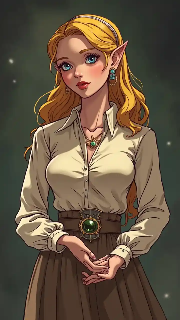 Hypnotized Princess Zelda katika satini blouse cartoon style
