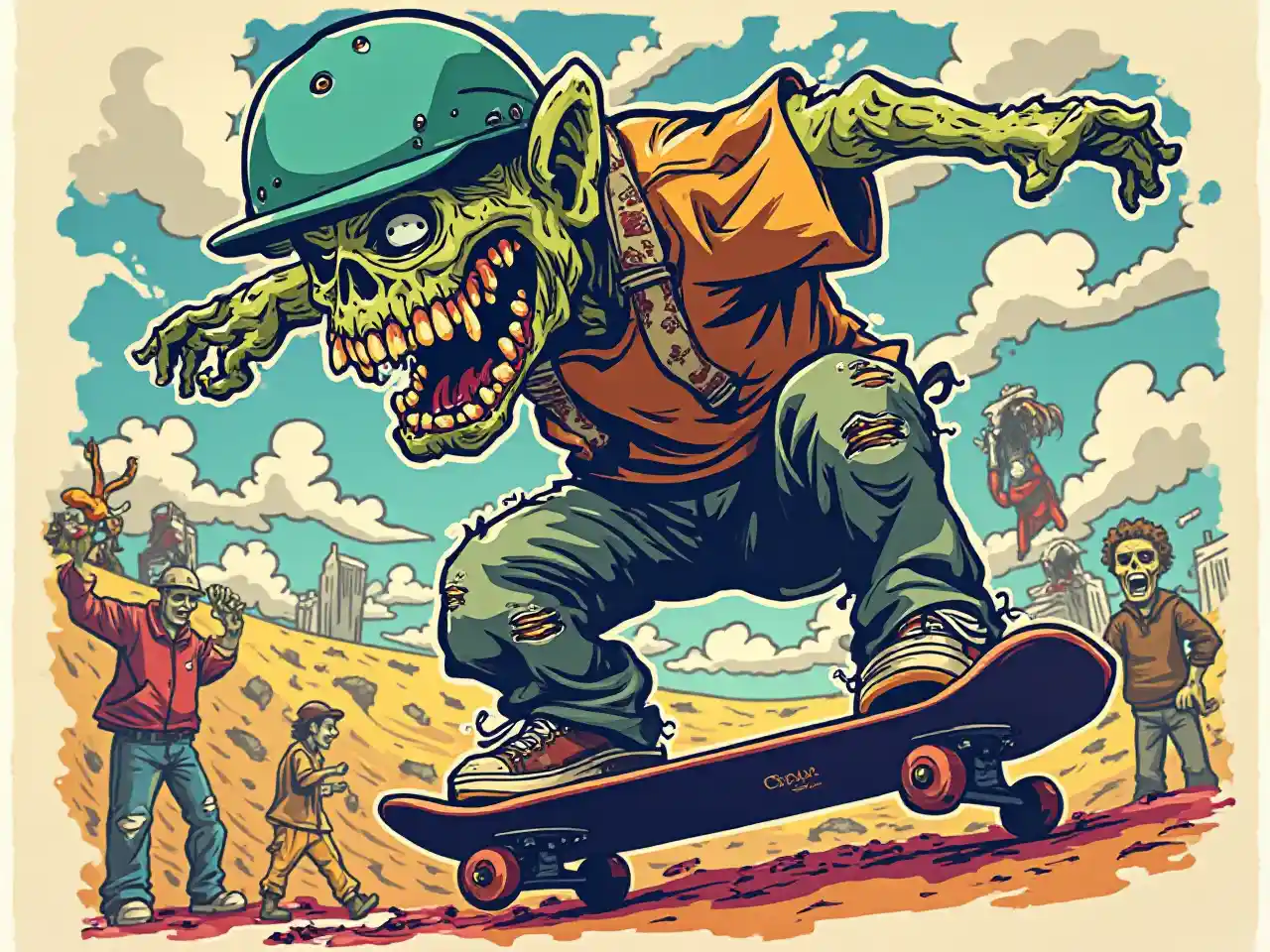 Picha za sanaa, stika, skateboarding ya zombie