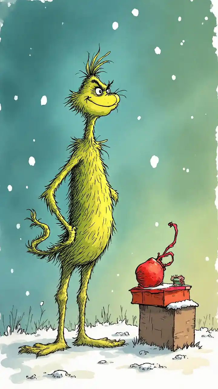డాక్టర్ సస్ చేత గ్రించ్ యొక్క పిల్లల పుస్తక చిత్రణ