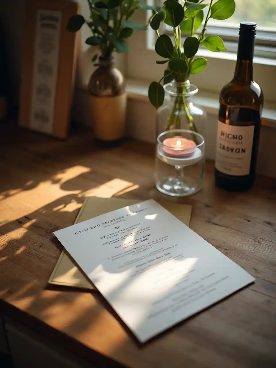 వంటగది బంచ్ మీద వివాహ ఆహ్వానం. nice moody light