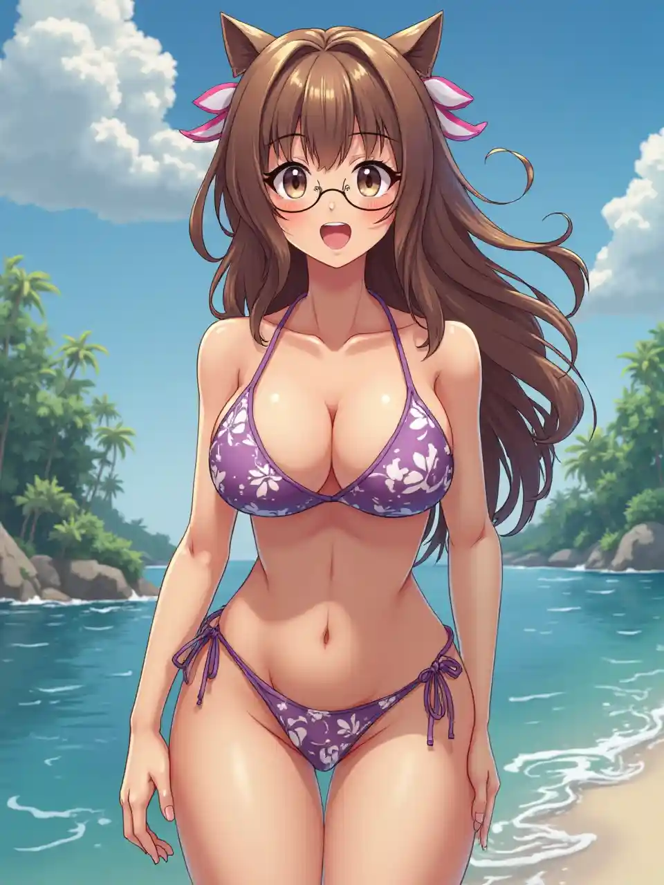 สาวอานิเมะสวย โป๊ในบิกินี่ กับแว่น