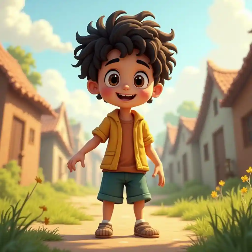 สร้างภาพอനിമেশั่นของเด็กฉลาดในสี fair เด็กชาวบ้านผมใหญ่เล่นในหมู่บ้าน