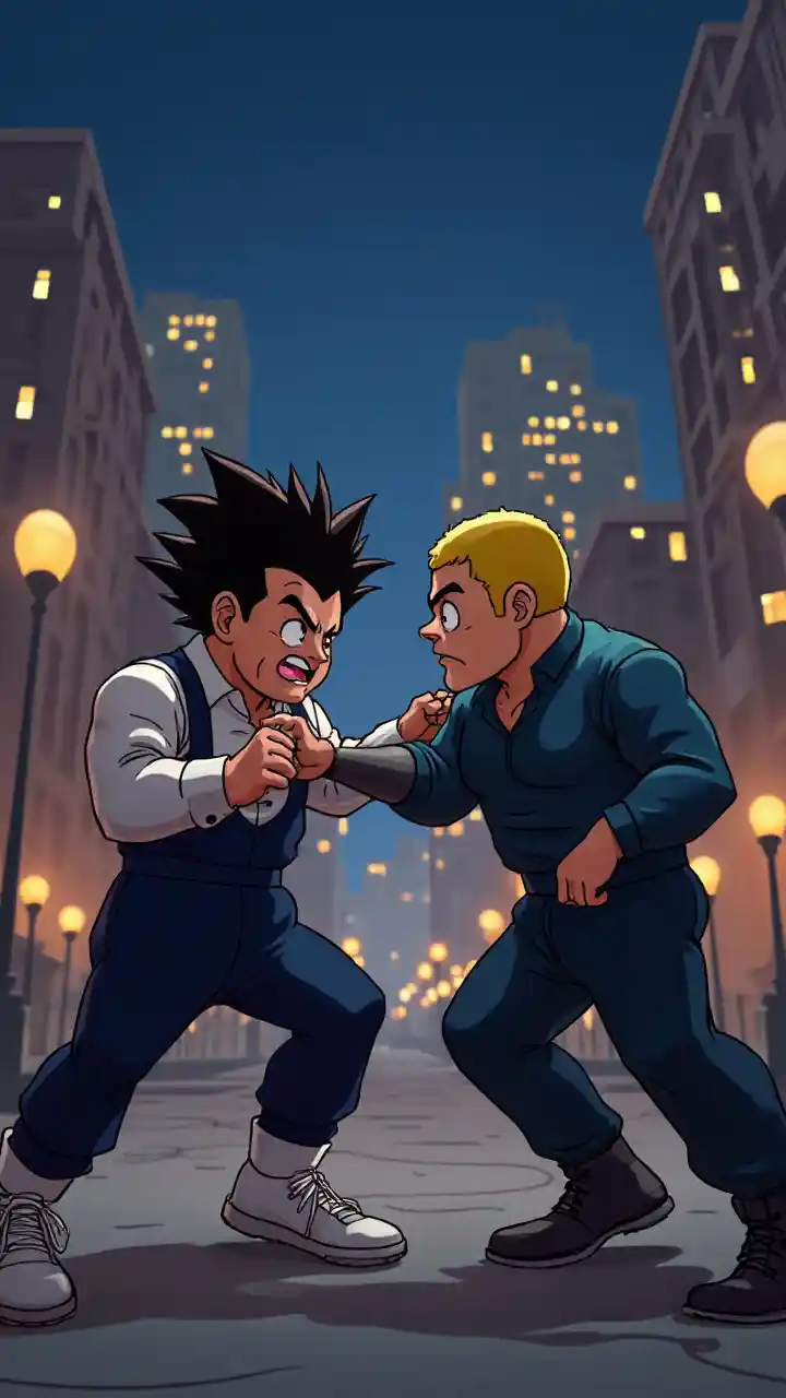เจมส์ คอร์เดน และเวเกต้าสู้กันแบบการ์ตูน ในเมืองกลางคืน