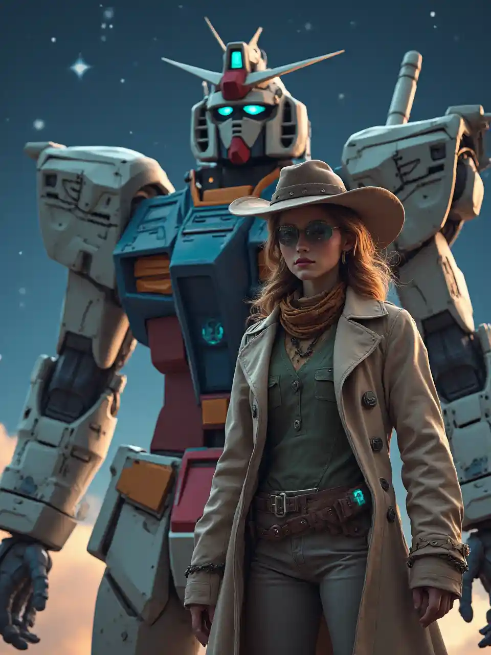 ในอวกาศที่ไม่มีขอบเขต ภาพที่น่าประหลาดใจเกิดขึ้น เมื่อสาววัวอวกาศที่กล้าหาญ โรบอตตัวมนุษย์ขนาดใหญ่นี้ ถูกประดับด้วยเกราะที่เรียบร้อย ที่ส่องแสงใต้มลวิกที่เต็มไปด้วยดาว สเปซคาวเกอร์ล์เอง เป็นการผสมผสานของจิตวิญญาณชายแดน และความสามารถในอนาคต ผ้าคลุมของเธอถูกปิดด้วยหมวกคาวบอยที่รักและมีขอบกว้าง ท่าทางที่มั่นใจและอาร่าที่ผจญภัยของเธอ แสดงถึงความพร้อมสําหรับการท้าทายใด ๆ ที่อาจมาทางของเธอ