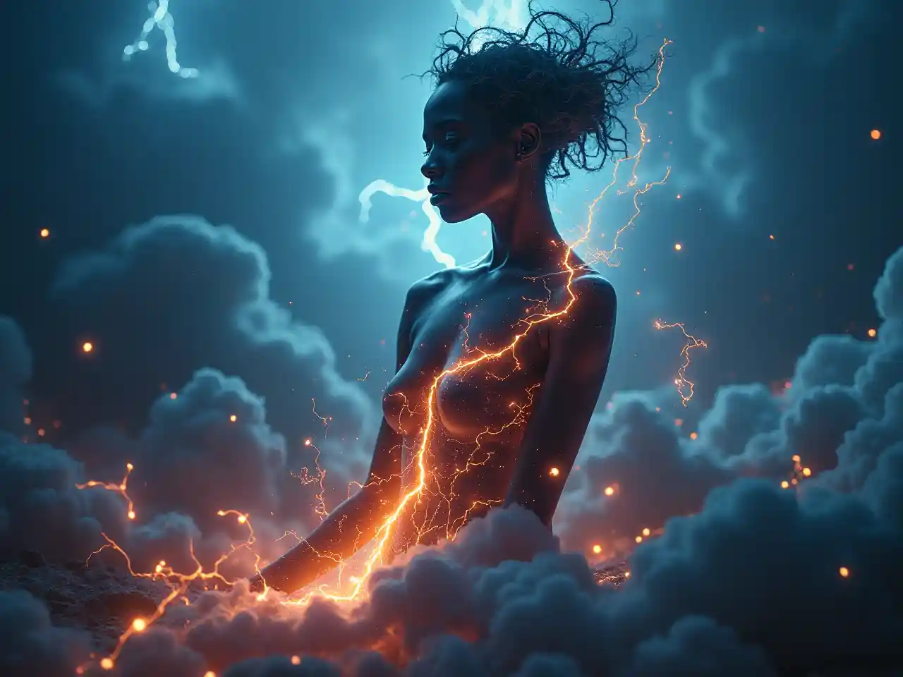 ภาพประกอบแบบ 3 มิติที่น่าตื่นเต้น ที่ภาพประกอบแบบมืดมิด ที่ถูกฟ้าพัด ภาพถ่ายทําให้เส้นแบ่งระหว่างโลกและโลกอื่นมืดมิด เมื่อแสงที่ระบายไปตามเส้นโค้งของร่างกายของเธอ เหมือนเส้นเลือดของพลังงาน บลูสที่เย็นและแอมเบอร์ที่ร้อนเต้นด้วยกัน ในการสื่อสารของเสียงที่ชื่นชม การแสดงภาพในความละเอียดสูงสุด ทุกรายละเอียด - จากฟ้าที่กระจายไปถึงผิวหนัง - ออกมาอย่างชัดเจน