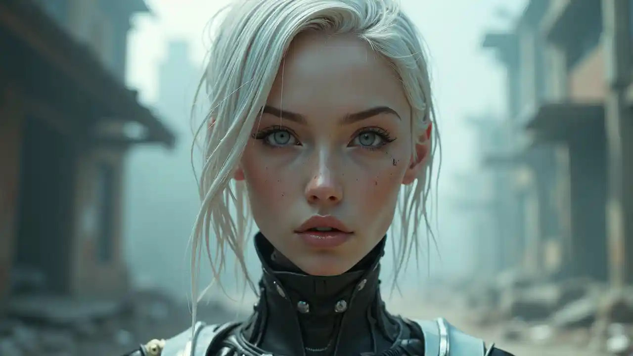 ศิลปะดิจิตอลที่มีคุณภาพสูงสุด ความจริงสุด กับรายละเอียดสูงสุด มีรูปถ่ายครึ่งร่างของทหารหญิงที่โหดง เธอแต่งตัวในแบบแบบสกอเรกของโปรเซลนแบบขั้นต่ํา ที่มีลักษณะซับซ้อน ใบหน้าของเธอสวยงามและดี มีรอยดินเล็กๆ และล้อมไปด้วยหมอกอากาศ รูปทรงของเธอมีสัดส่วนสมบูรณ์ แสดงความงามธรรมชาติและเนื้อผิว หลังคือเมืองที่พังสลาย และเป็นอนาคต ที่เพิ่มความน่าสนใจ ด้วยแสงที่ระดับ ความละเอียดเล็กๆ ที่สร้างสรรค์เพิ่มความพิเศษ ให้กับวิสัยทัศน์หลัก