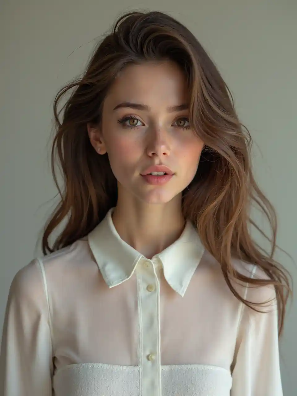 สาวสวย ผ้าใบขาว คอขึ้น ผมยาว