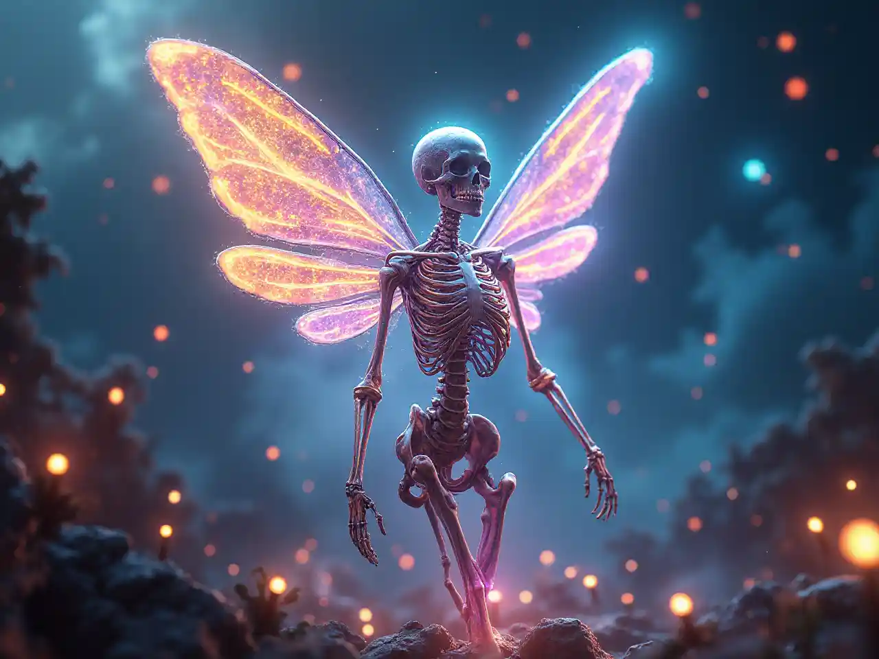 ภาพร่างกายเต็มตัวของนางฟ้าที่น่าหลงใหล โดยมีแผนกระดูกนางฟ้าที่ละเอียด ภาพวาดนี้มีลักษณะมหัศจรรย์ ผลประกายเนออนต่ําเพิ่มความคมชัด และรายละเอียดที่ซับซ้อน สร้างชิ้นงานศิลปะแนวแบบมือหนึ่ง ที่สามารถชนะการแข่งขัน งานศิลปะนี้เป็นภาพที่แสดงคุณภาพที่พบใน ArtStation, Imgur และ Pinterest โดยแสดงด้วยความละเอียดสูง 4 และ 8k มุมมองถูกออกแบบอย่างเชี่ยวชาญ ทําให้รําลึกถึงการวาดภาพบนผ้าใบ