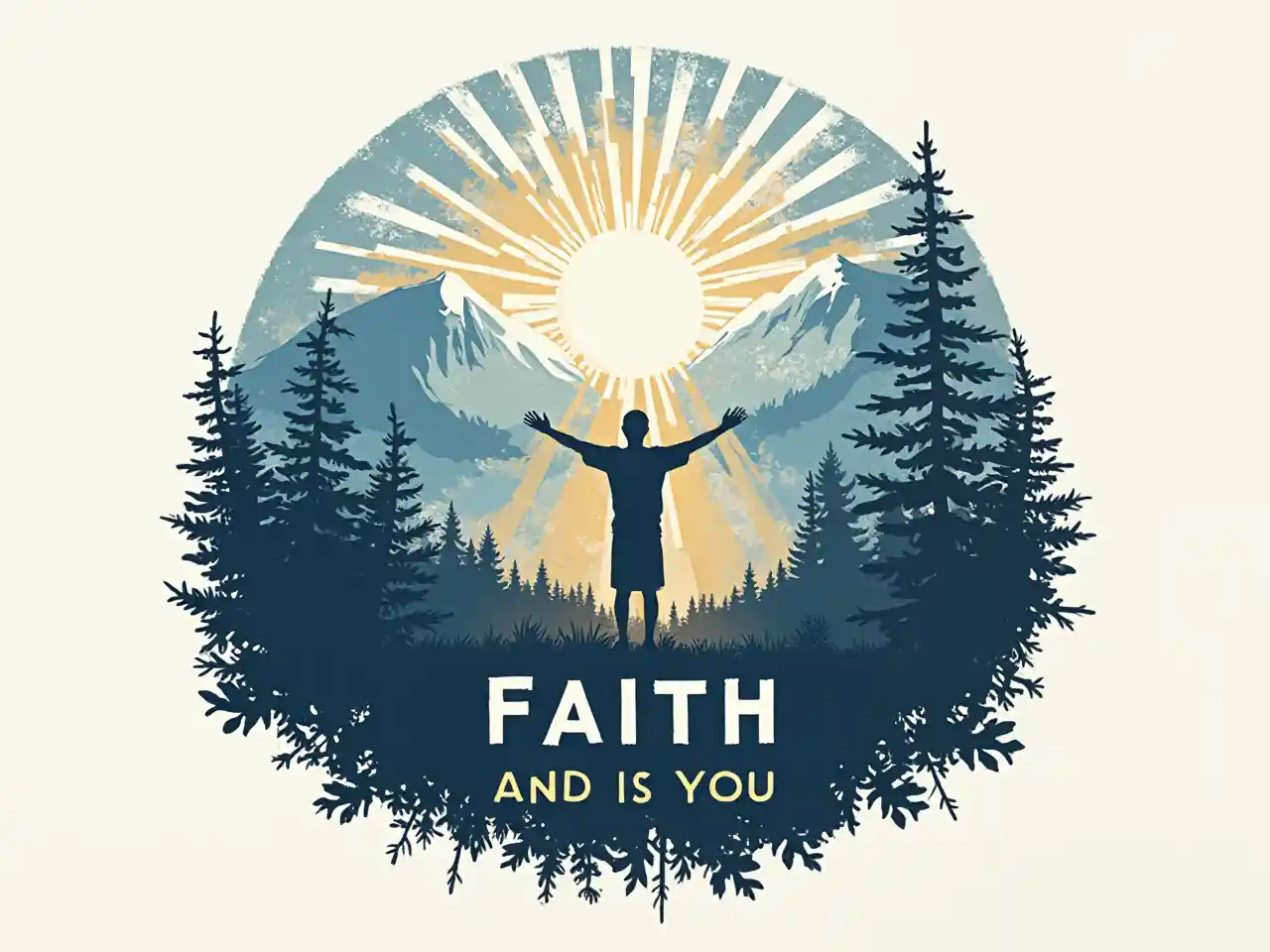 "ออกแบบเสื้อกองทัพคริสเตียน แบบทันสมัย สะอาด และมีพลัง ธีมกลางควรเป็น 'พระเยซู ความเชื่อ และ คุณ' ใช้ สี ที่ กล้า แต่ มี ความ สนใจ (สี ฟ้า, ขาว และ ทอง) แสดงภาพของพระเยซูที่แขนกว้างอยู่ด้านหลัง โดยถูกล้อมรอบด้วยแสงสว่าง และสถานที่ที่สงบในกลางแจ้ง เช่น ป่า หรือภูเขา ซึ่งเป็นสัญลักษณ์ของที่ตั้งค่าย รวมรูปตัวของคนยืนและยกมือในการบูชา มองหน้าต่อพระเยซู เพิ่มคําว่า 'FAITH' ด้วยตัวอักษรใหญ่และทึบทั่วพื้นที่อก, โดยมีข้อเล็กลง: 'Jesus, Faith, and You Camp 2025' ใช้สไตล์การวาดภาพคริสต์แบบเล็กน้อย แต่มีผล กับเส้นที่สะอาด เนื้อที่อ่อนแอ และแรงบันดาล ให้แน่ใจว่าการออกแบบมีศูนย์กลาง ง่ายที่จะพิมพ์บนเสื้อเสื้อ และดูดีบนผ้าสีดําหรือเบา"