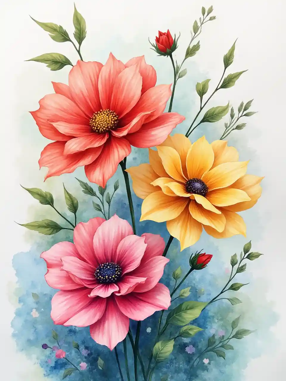 ภาพวาดดอกไม้สีน้ําสดใส ทําด้วยมือ