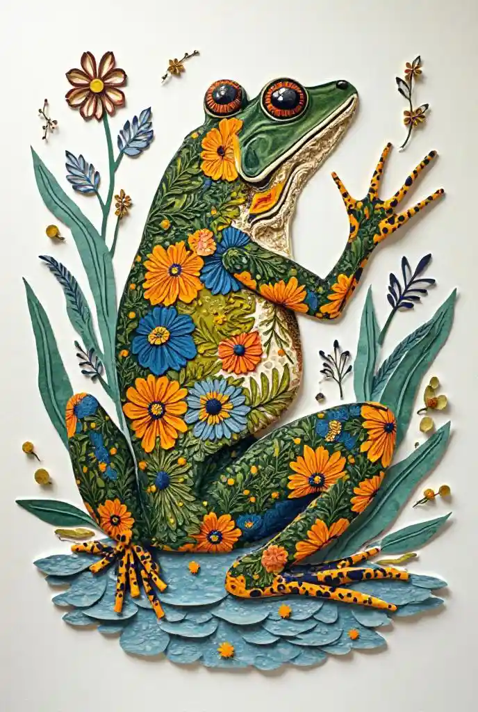 DavidMultiple kind paper collage, multiple pattern, frog,