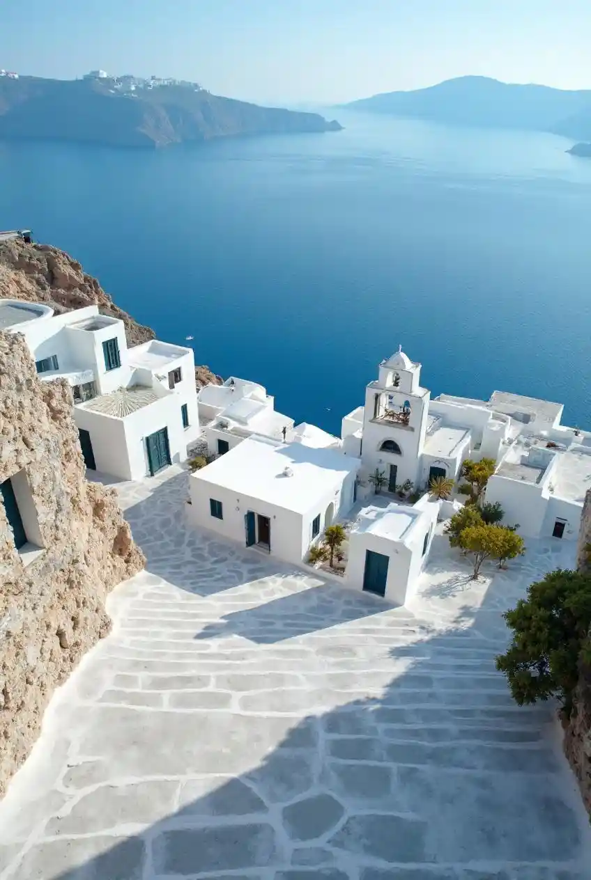 หมู่บ้านกรีกที่ล้างสีขาว ใกล้ทะเลสีฟ้า