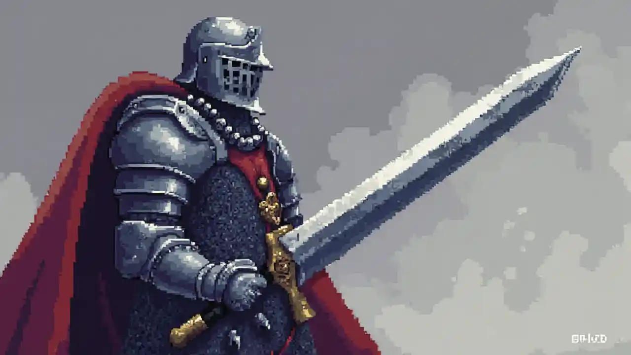 ภาพเก่า Retro Pixel Art ของ Knight with Sword