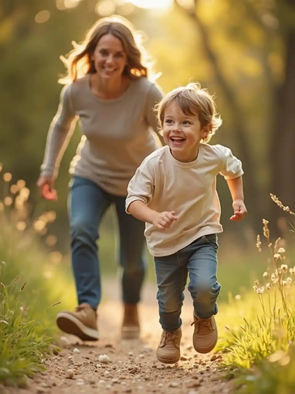 เด็กวิ่งไปหาแม่เต็มไปด้วยความรัก