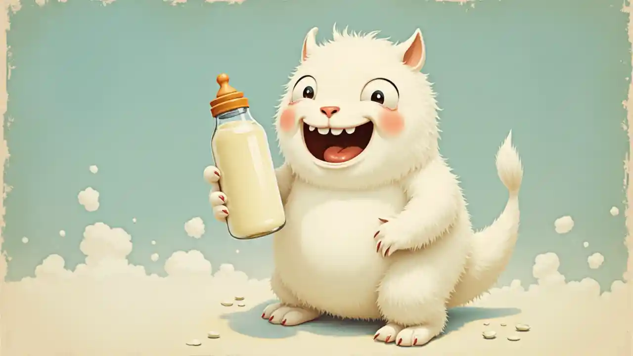 โปสเตอร์หนังยุค 60 ของมอนสเตอร์นม มอนสเตอร์หนุ่ม น่ารัก อ้วน และขาวทั้งหมด มันเก็บขวดนมของเด็กไว้