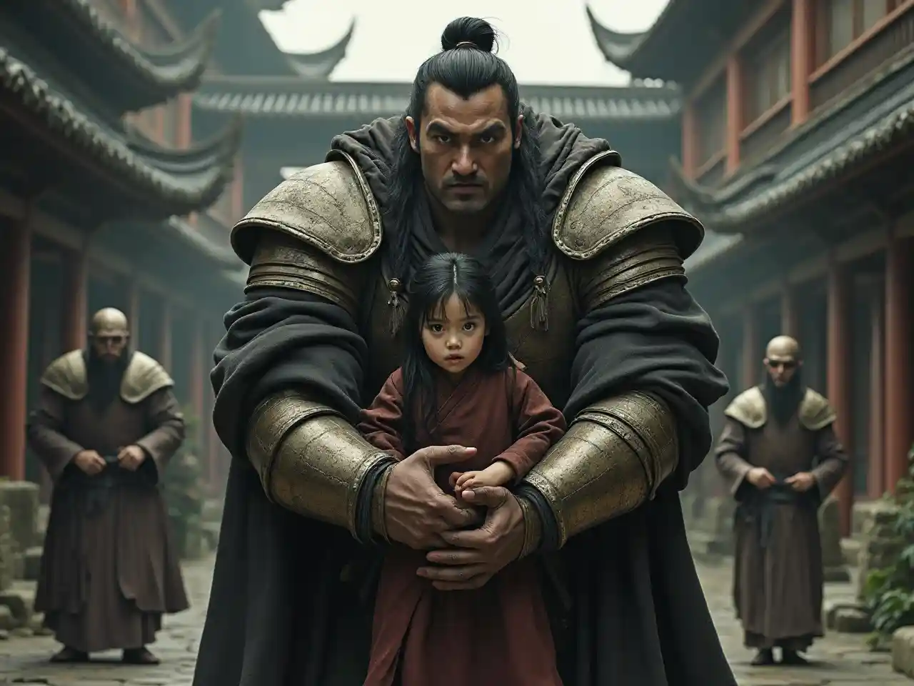 หนุ่มชายที่โหดร้าย แต่หล่อ (ogre) จับ (เจ้าหญิงเอเชียอายุประมาณหกปีในแขนของเขา) ป้องกันเธอ เขาสวมเสื้อเก่าหนัง มองเข้ม เจ้าหญิงแต่งตัวในชุดพื้นฐานของเอเชีย มีผมสีดําและตาน้ําตาลที่กลัว สีเป็นสีเดียว มีภาพยนตร์ที่ดูได้กว้างมาก