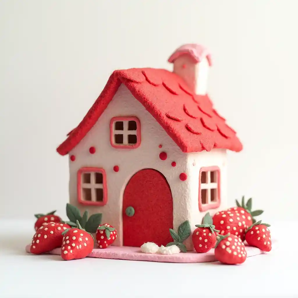 สไตล์งานอาชีพ, บ้านทําจากผ้าห่มที่ครอบคลุมด้วยสตรอเบอรี่และตกแต่งสตรอเบอรี่, สีแดงและขาว, ง่าย, กลม, และเนื้อเยื่อผ้าห่มน่ารัก, ขอบอ่อนและรายละเอียดไม่ชัด, หลังสีขาวบริสุทธิ์, 4d, การทํางานเส้นที่เรียบง่าย, คลาสสิคยังมีชีวิต, การคัด, การชันและการออกแบบตัวการ์ตู