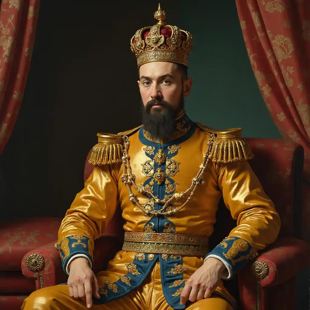 ภาพวาดศตวรรษที่ 18 ของจักรพรรดิเวียดนามที่นั่ง ใส่เสื้อผ้ายุโรป และมงกุฎจักรพรรดิเอเชีย