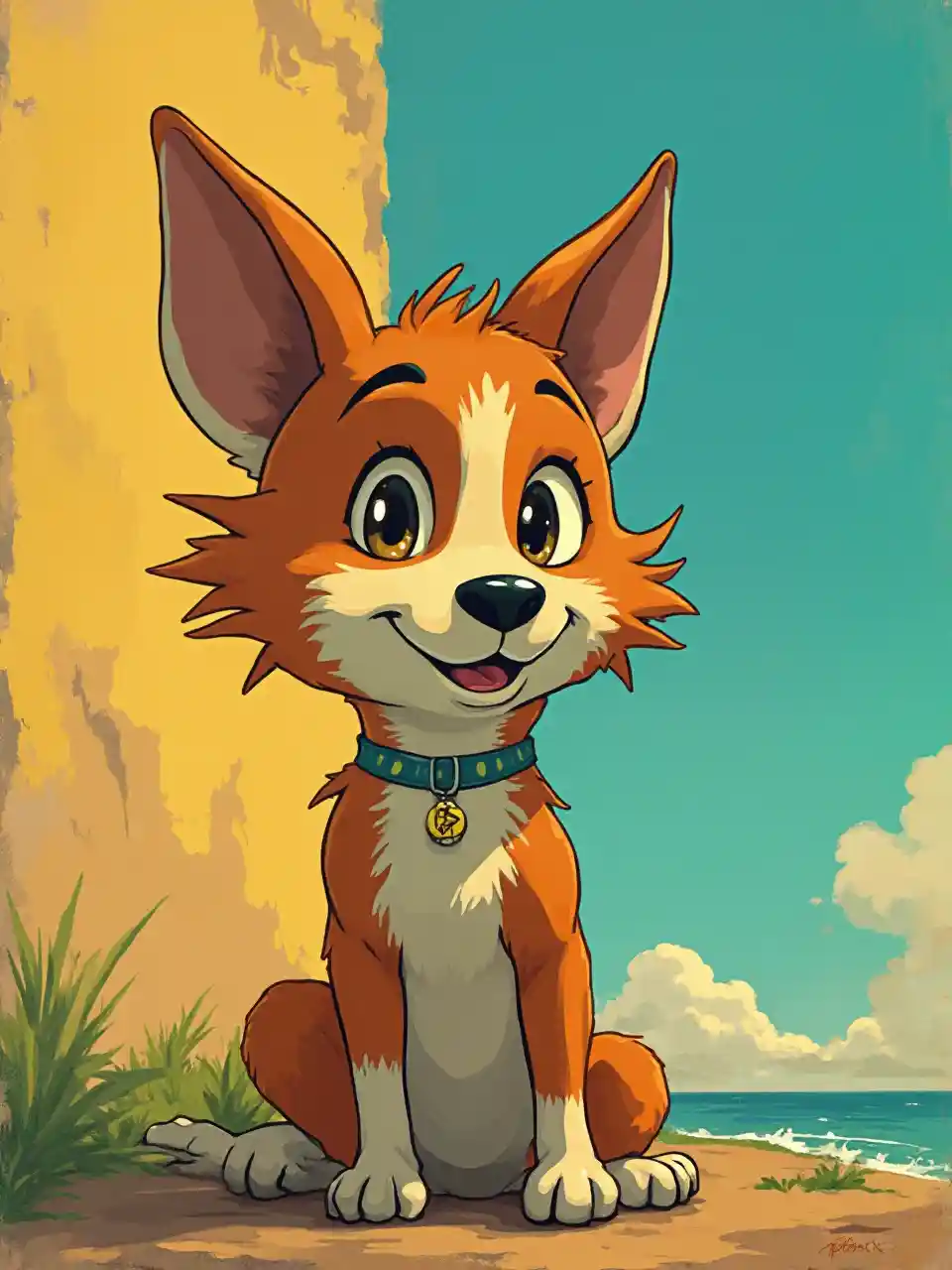 Mackenzieรูปแบบการ์ตูนยุค 50 ของสุนัขแบบมนุษย์ สไตล์ของฮันนา บาร์บาร่า สตูดิโอจิบลี่ อากิระ โทริยา เจมส์ จิลเลอร์ด์ วอร์เนอร์ บราซอร์