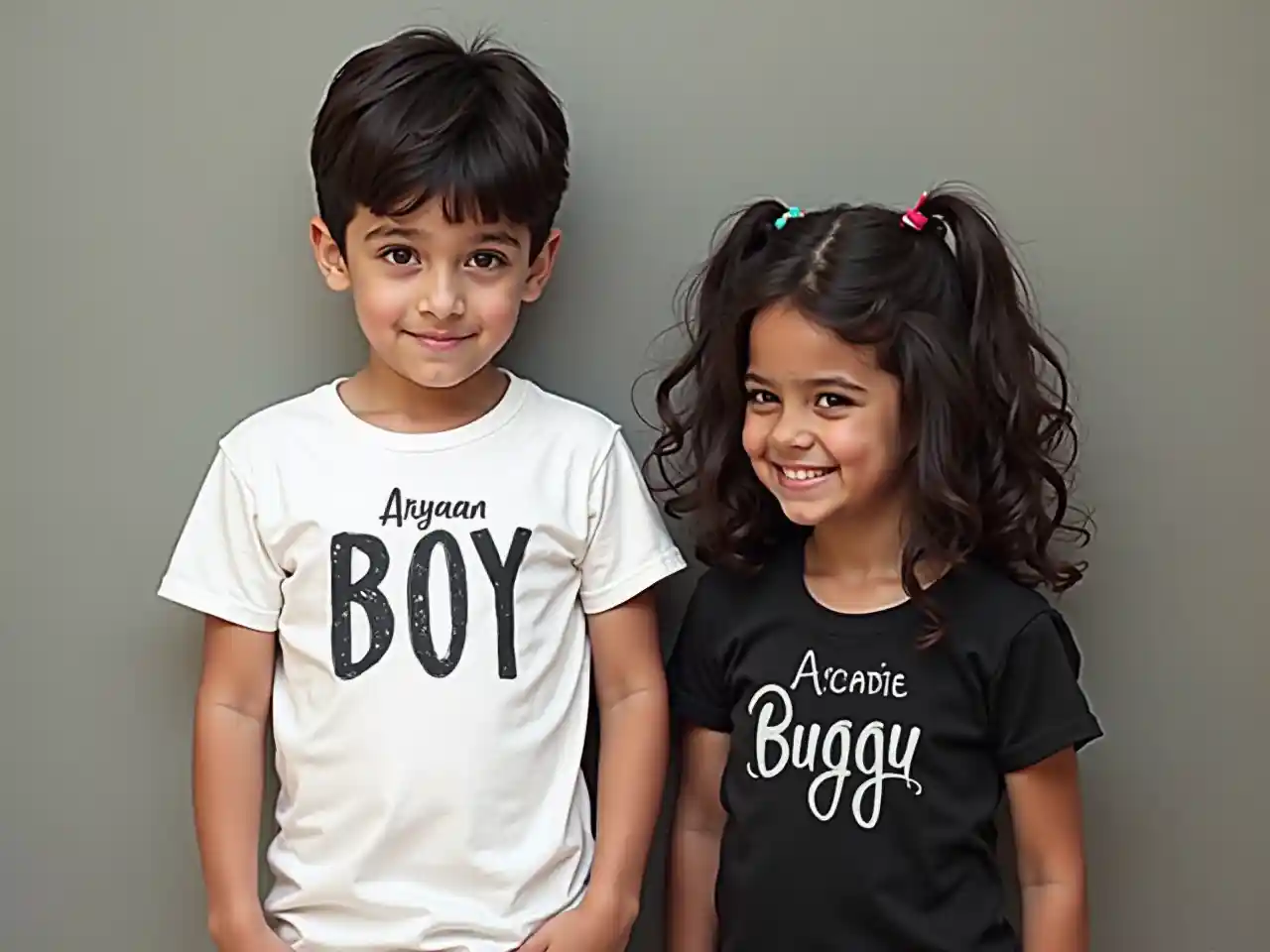 Resim Çiftini Oluştur Erkek adı Aryan beyaz tişört Kız adı buggu siyah renk tişört