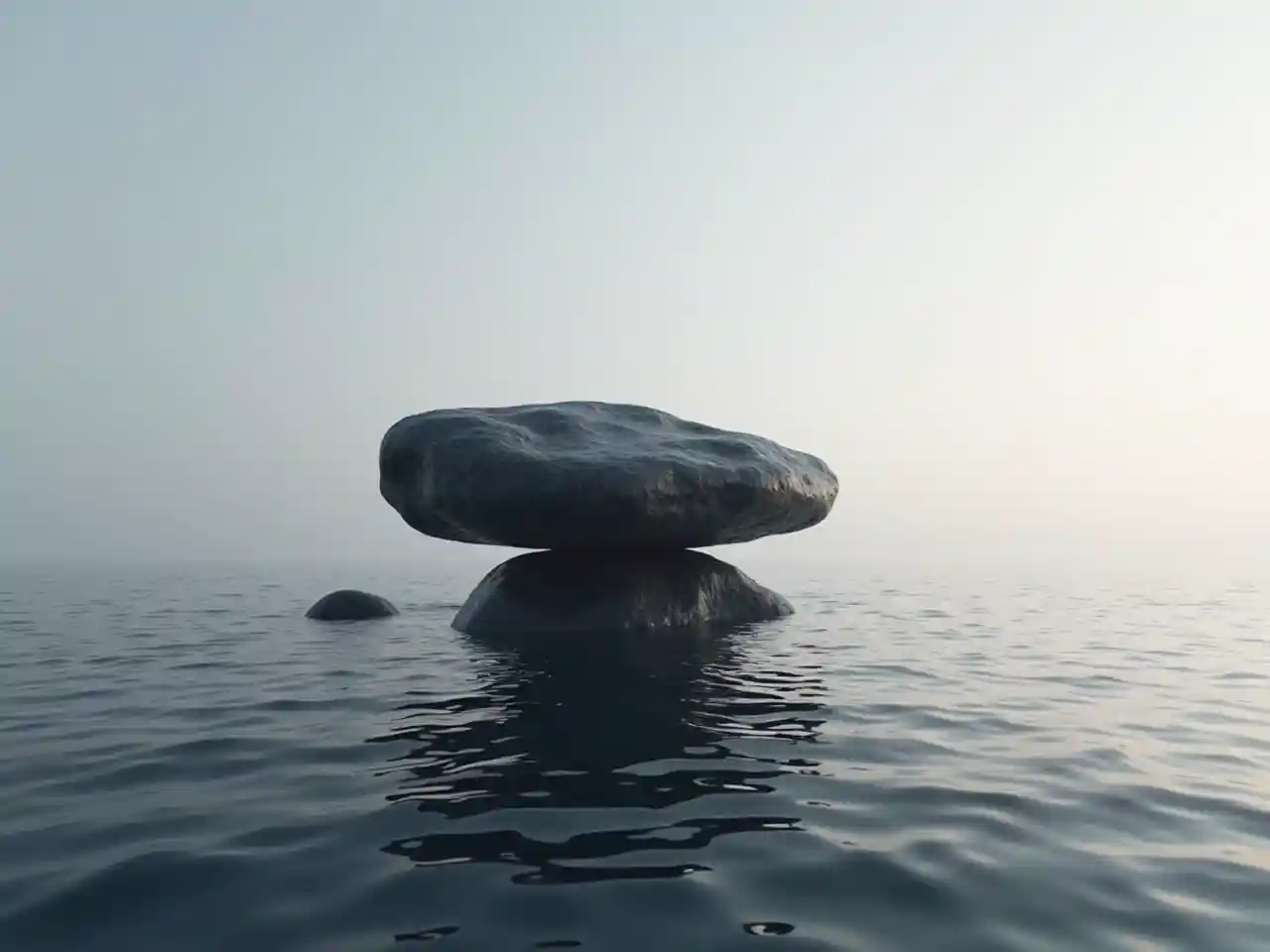 Minimal, basit siyah kaya suların üzerinde uçuyor, sadece ufuk arka