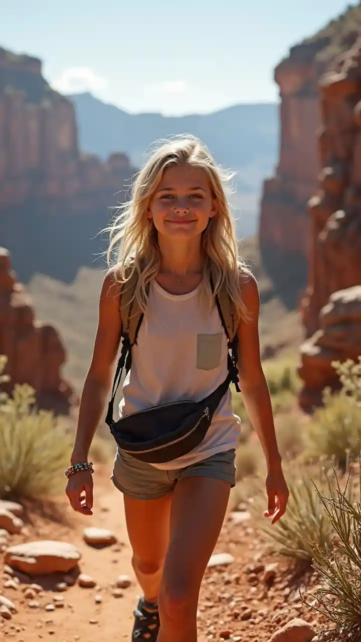 Sarışın Genç Kız Büyük Kanyon'da yürüyor