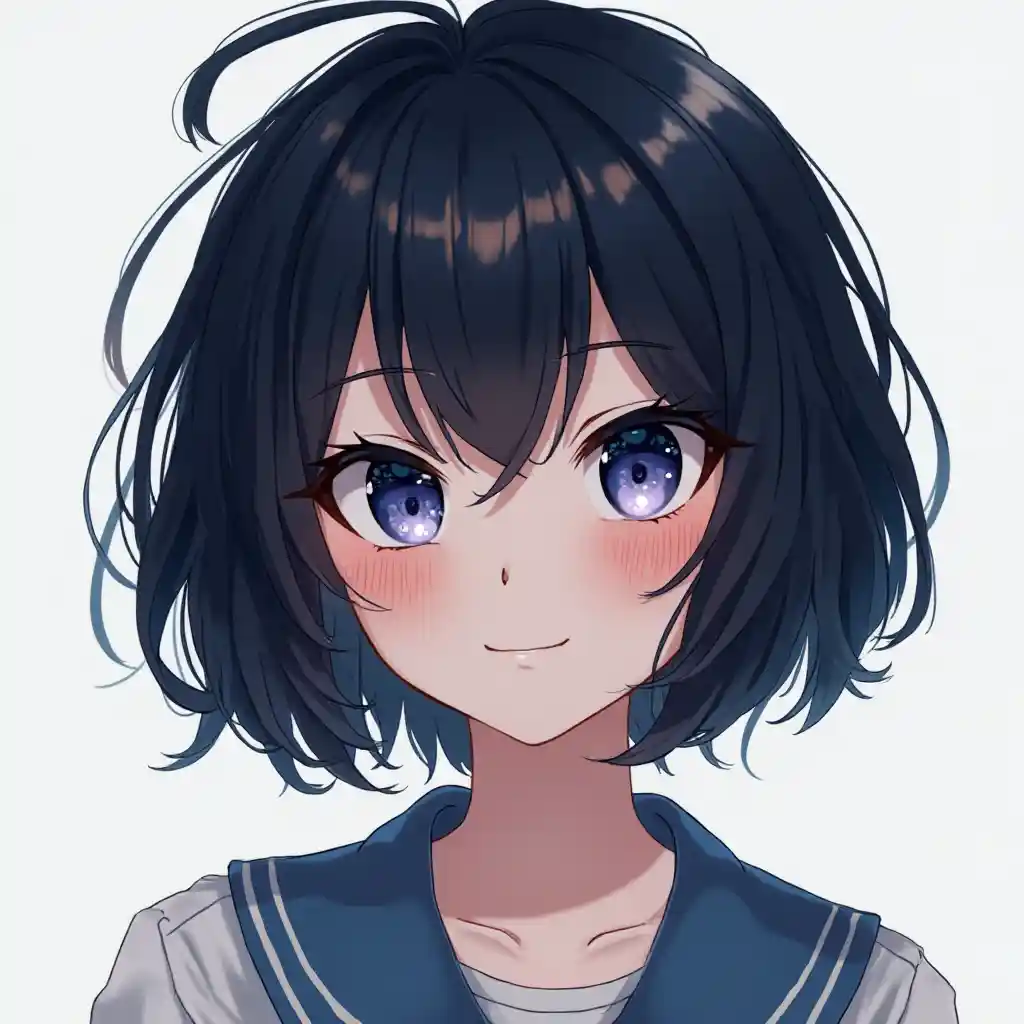ANNAMavi yarı mor gözlü ve kısa siyah saçlı bir kız.