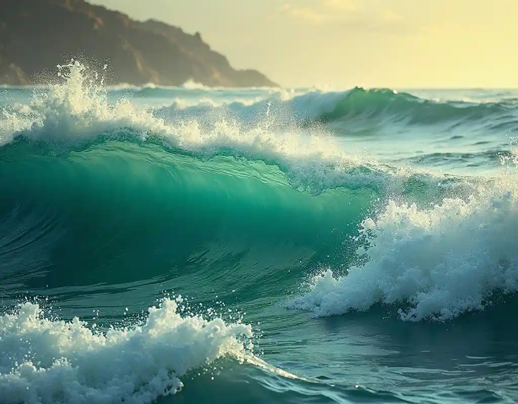 (Derneği yeşil mavi) (Altın)), Dalgaların Resmi, (İki renk resim)) manzara, UHD, doğru, en iyi kalite, 16k