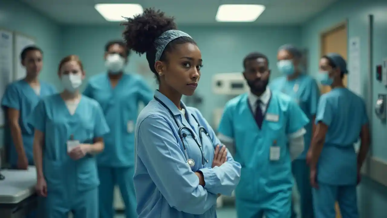 LaylaYoğun bir hastanede, iç acil servis, endişeli Afrikalı doktor ve hemşireler.