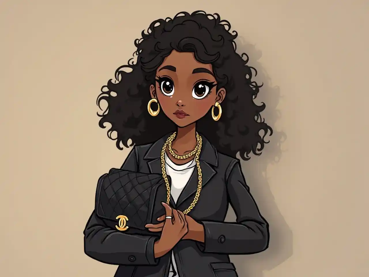 Chanel giyen siyah çizgi filmleri
