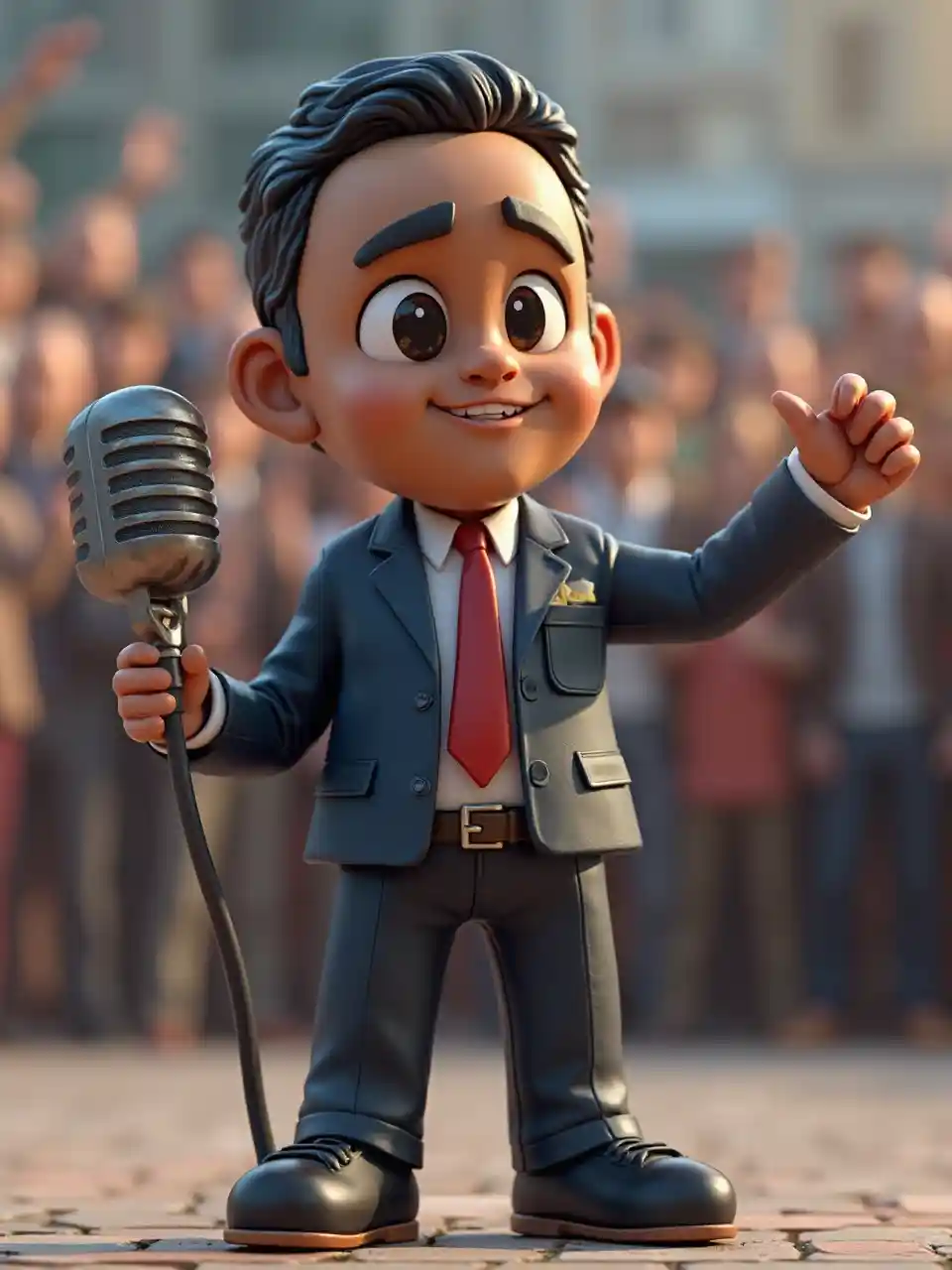 Etik liderliğe, aktif topluluk hizmetine ve ulus inşaatına adanmış ahlaki bir lider tasvir eden 3 boyutlu bir aksiyon figürü yapın