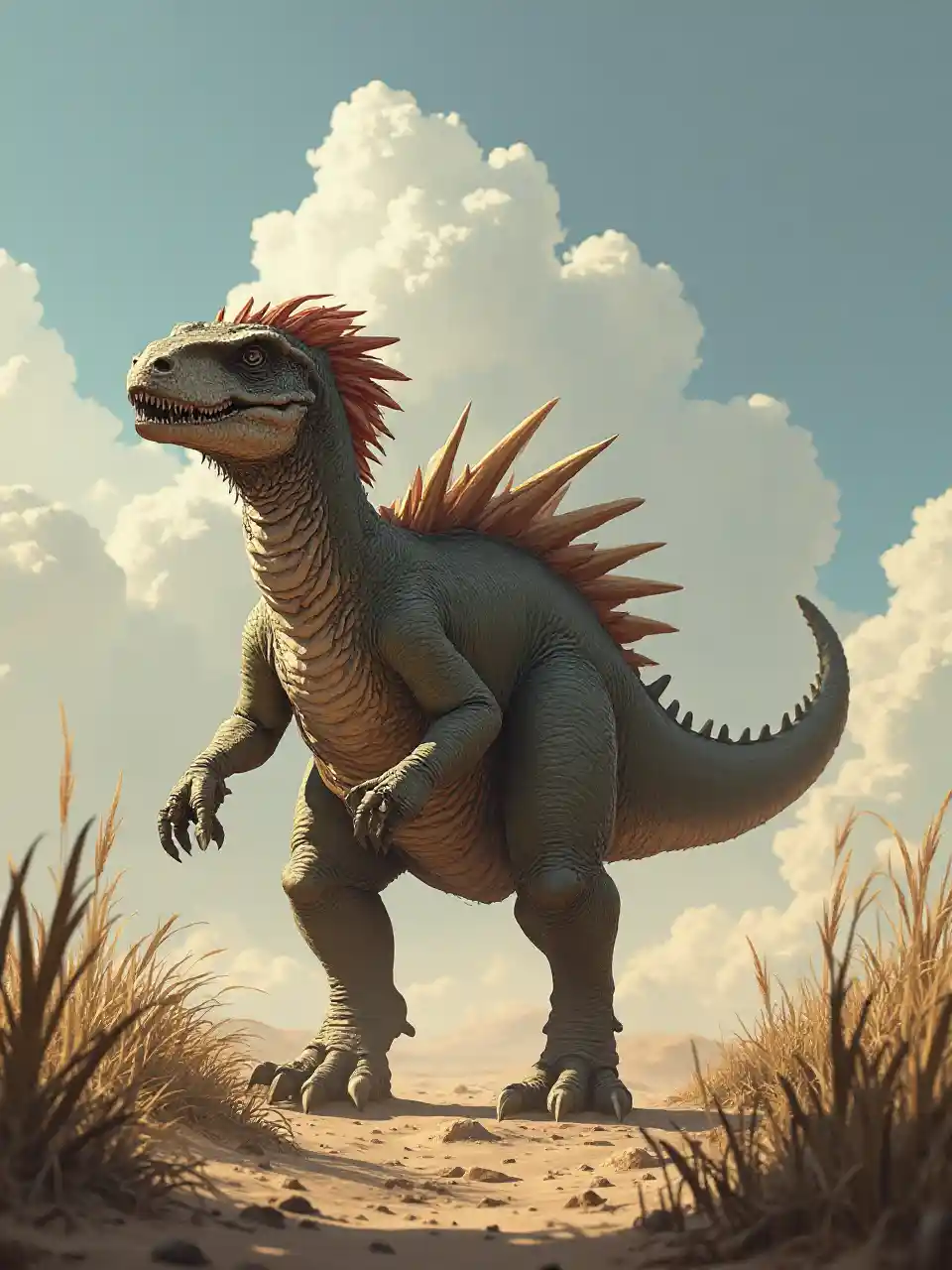 MaverickT-Rex, bir çölde fantazi sanatı tarzında yürüyor
