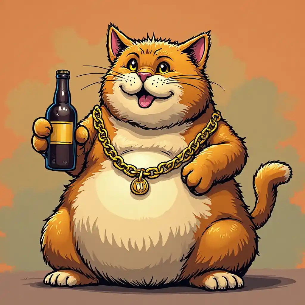 TinaAltın zincirli ve pençesinde bira şişesi olan komik İngiliz bir kedi. Renkli çizgi romanları gibi