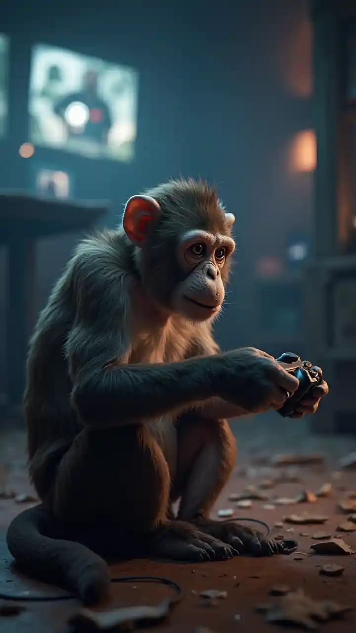 PlayStation'ta Video Oyunları Oynayan Oyuncu Maymun