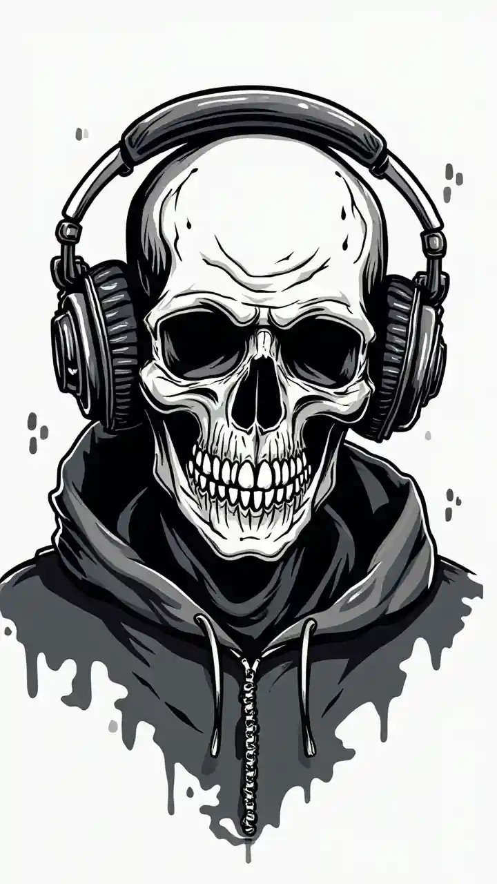 Kafatası Oyunları üzerinde siyah beyaz oyun Logo, vektör resmi, kulaklarında gamer ölü kafası veya kafatası, vektör görüntüsü