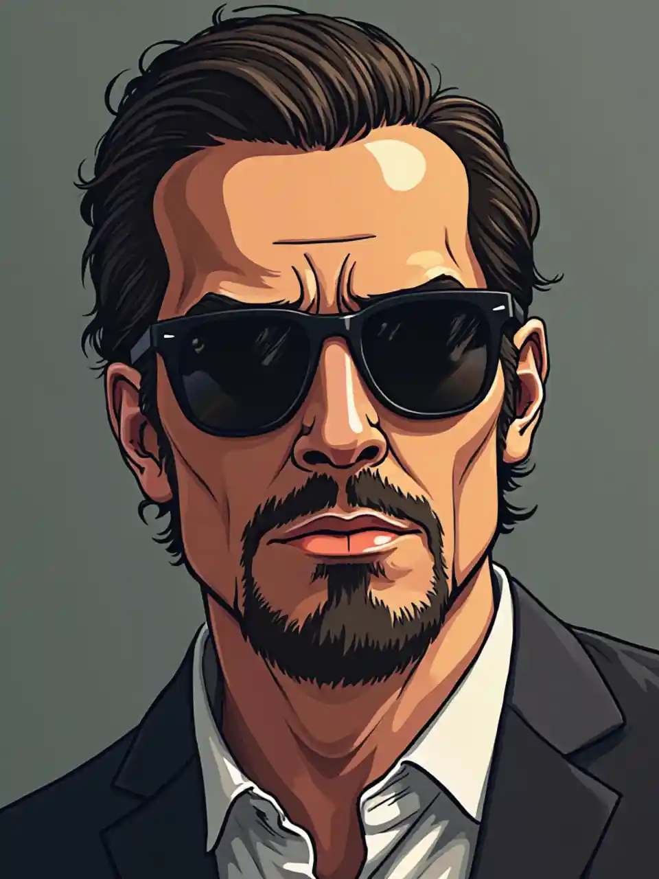 GTA Oyundan Bir Adamın Portresi, vektör sanatı, siyah güneş gözlüğü, düz renkler
