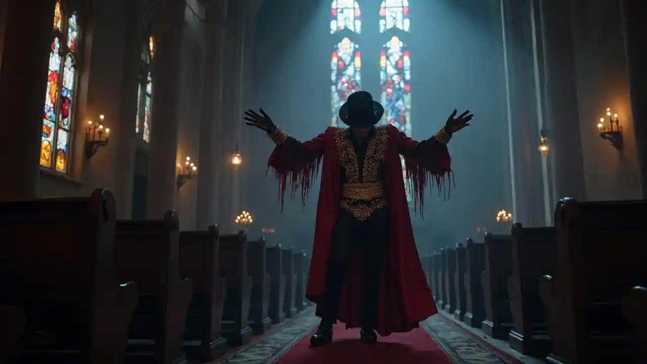 Michael Jackson'ın korkunç bir Cadılar Bayramı kostümüyle gizemli, karanlık bir kiliseye girdiği inanılmaz gerçekçi bir görüntü oluştur. Kilisenin atmosferi korkunç ve ürkütücü olsun, parlak ışıklar, gölgeler ve Halloween havasını artıran dekorasyonlar olsun. Görüntünün çok yüksek kalitede olması gerçek olmadığına inanmayı zorlaştırıyor