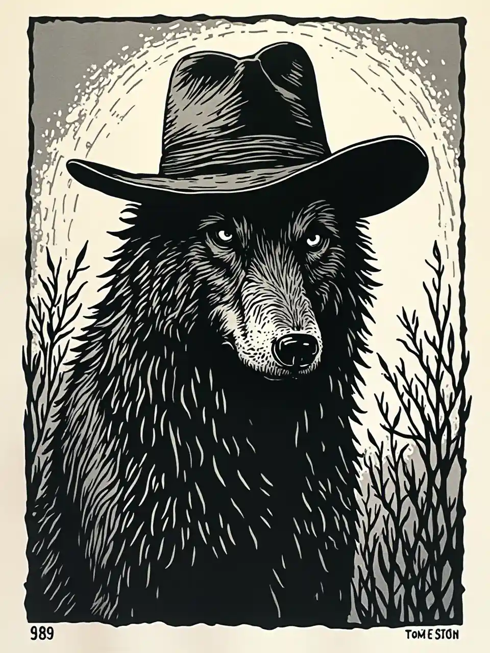 Siyah Beyaz Linot Kurt Kovboy Damgası