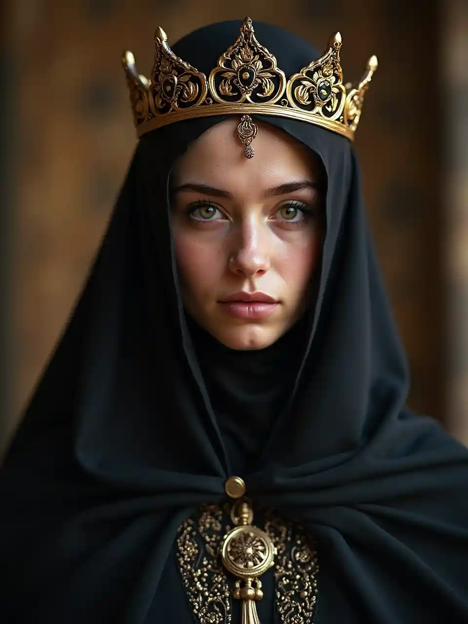 Lisa Blackpink Arap moda ile siyah pelerin ve altın taç Renesans Osmanlı tahtı krallığında, fotoğraftır, son derece detaylı, bokeh aydınlatması, hiperrealist, gerçek fotoğraf, gerçek yüzü, ultra detaylı fotoğraf