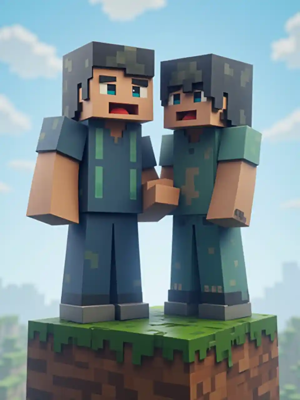 Bir blok üzerinde duran 2 Minecraft karakteri bir görüntü oluştur