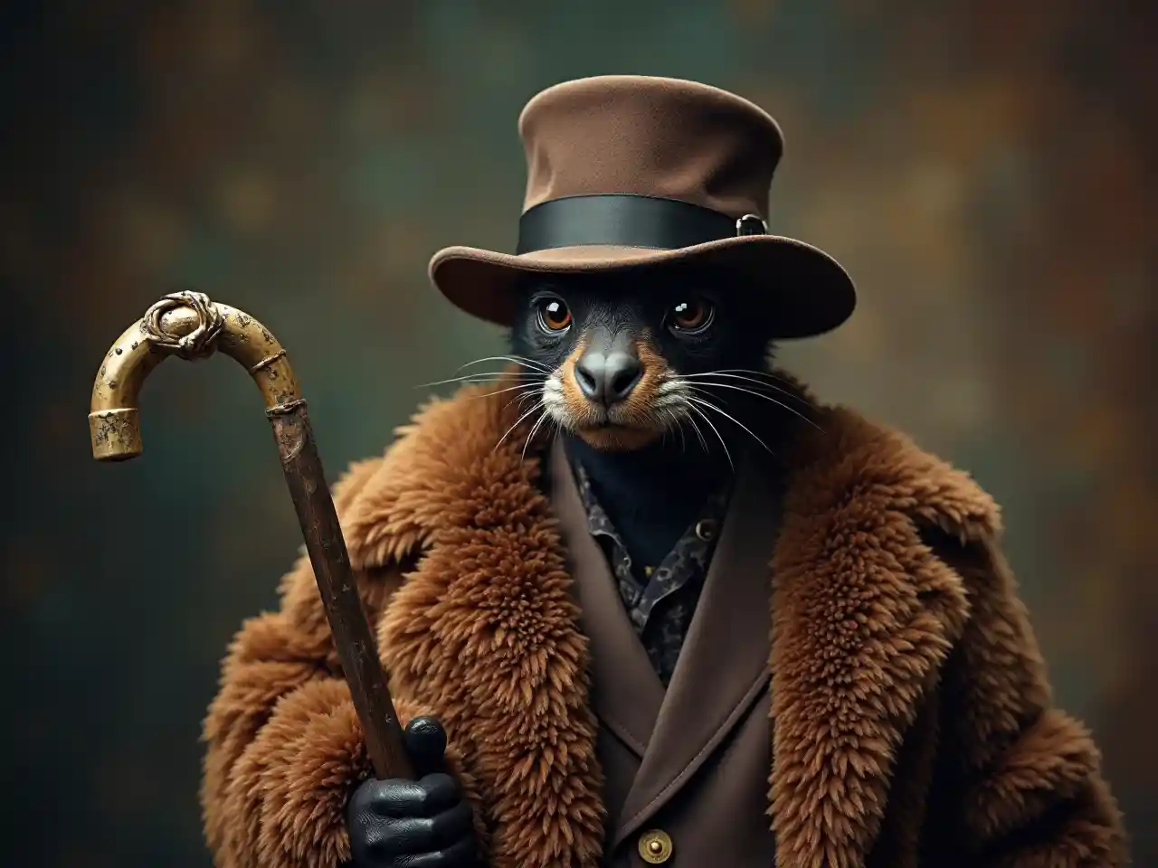 Pezevenk şapkası, kürk ve değneği olan bir Wassie