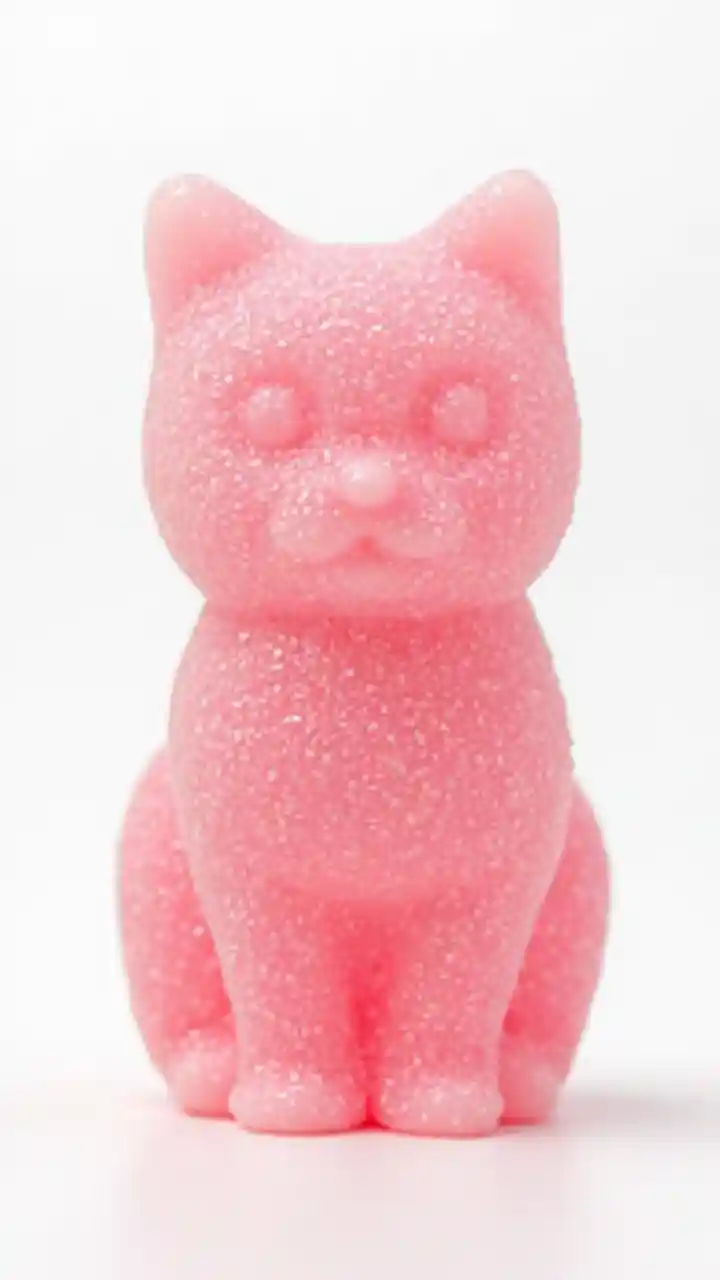 Beyaz arkaplanda pembe kedi şeklinde sakızlı şeker