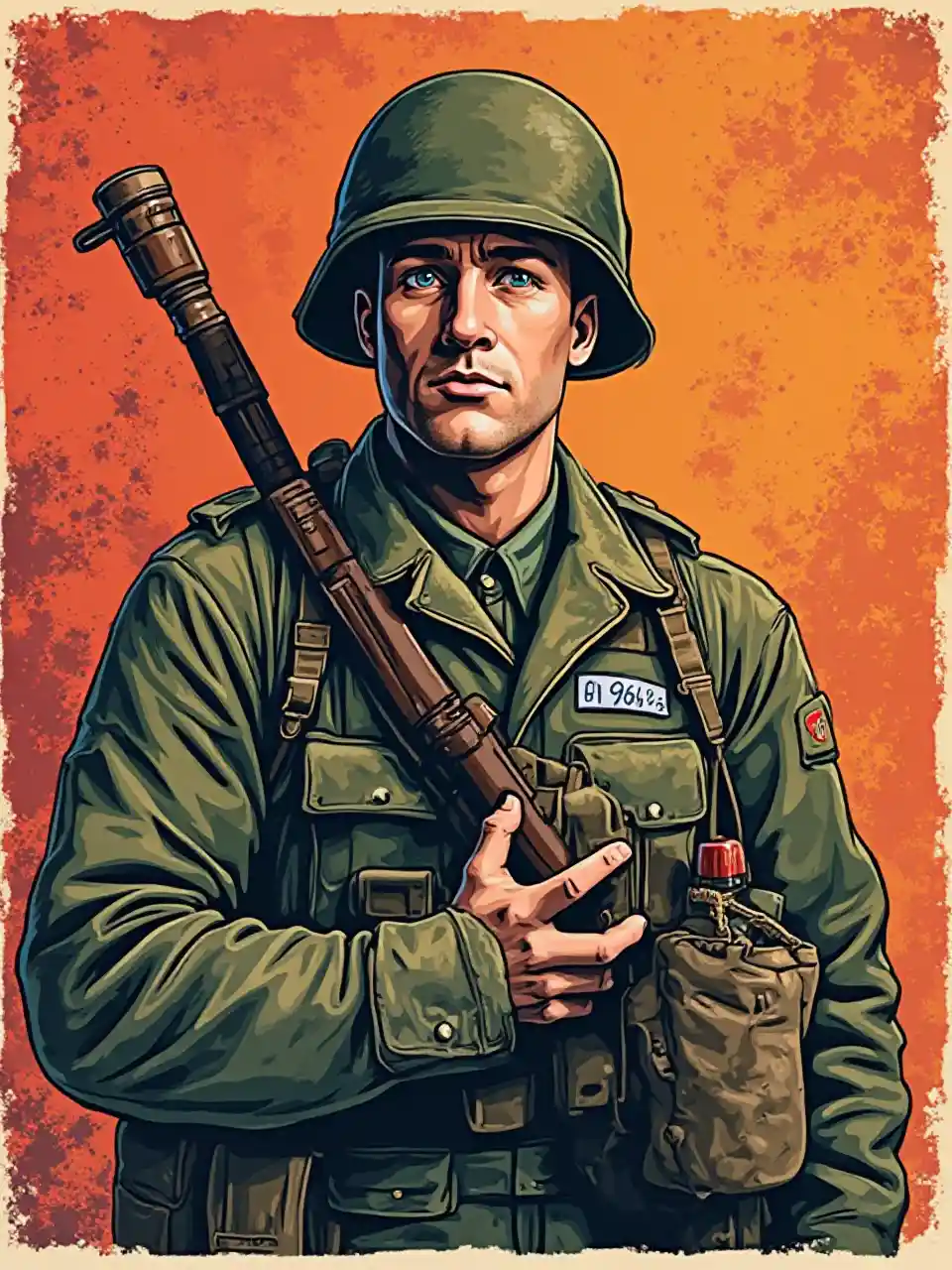 pop art picture of a soldier with a rivet mate bottle