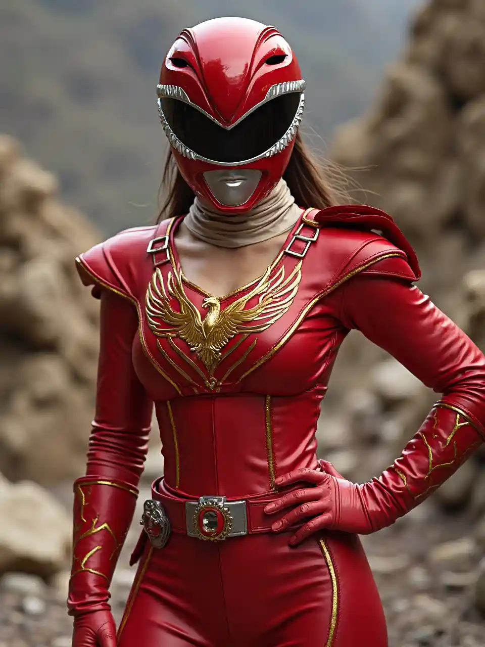 Kırmızı Rubin Phoenix Power Ranger Tam vücut fotoğrafı