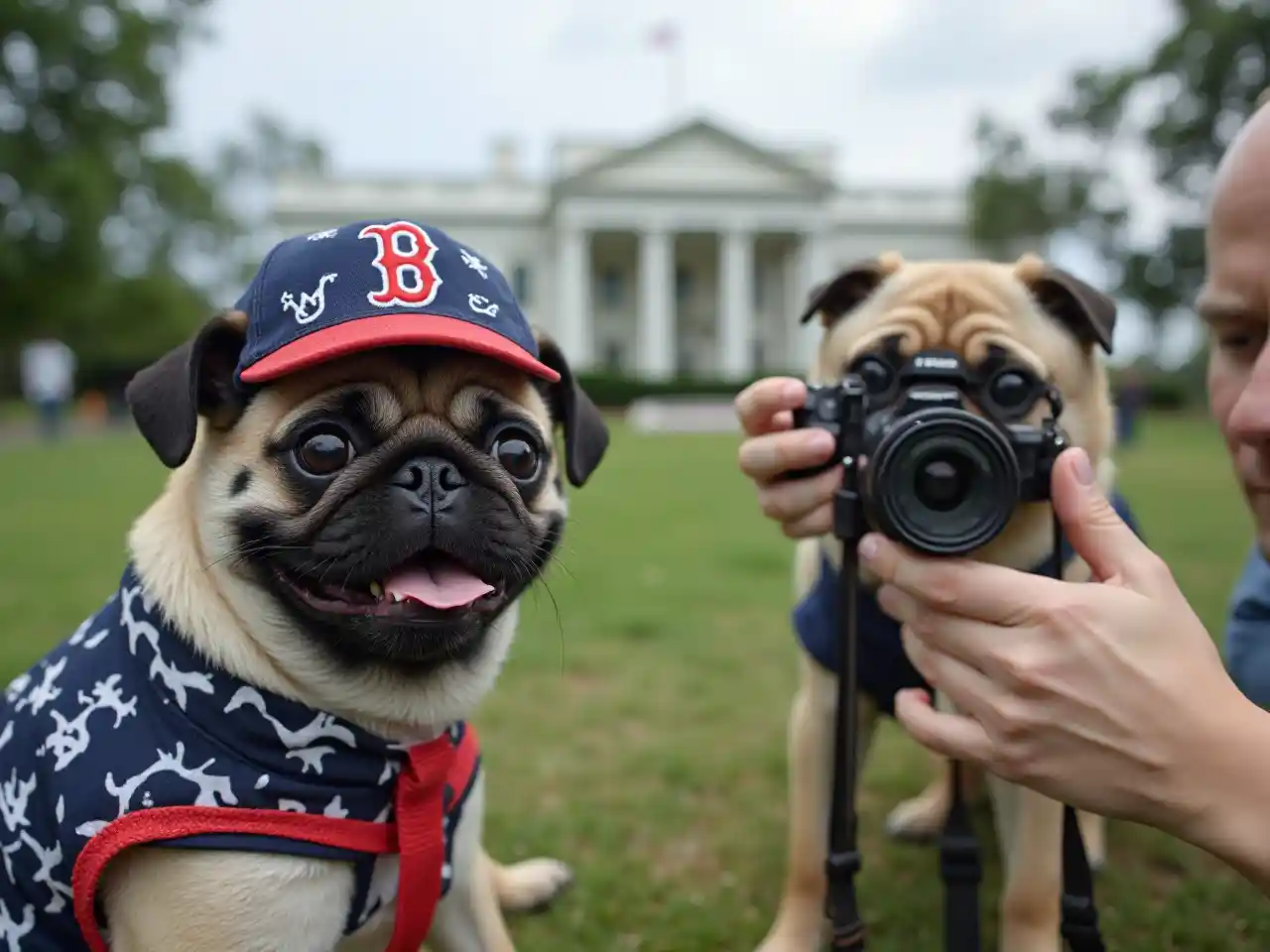Beyaz Saray'da Red Sox'un şapkası olan Pug