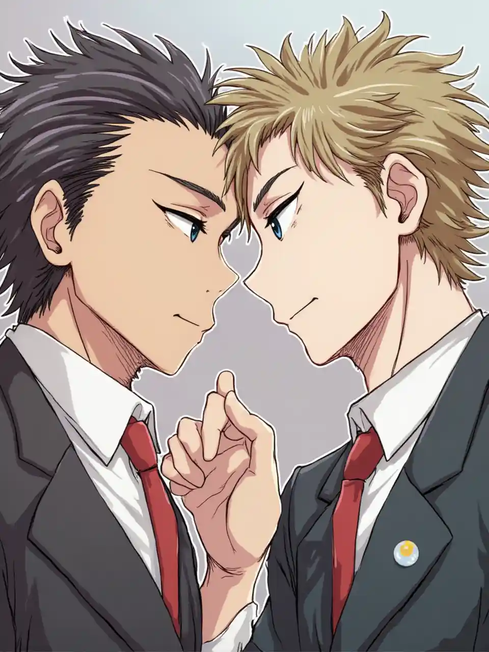 BellaKırmızı kravatlı adam parmağıyla diğer adamın burnunu vur