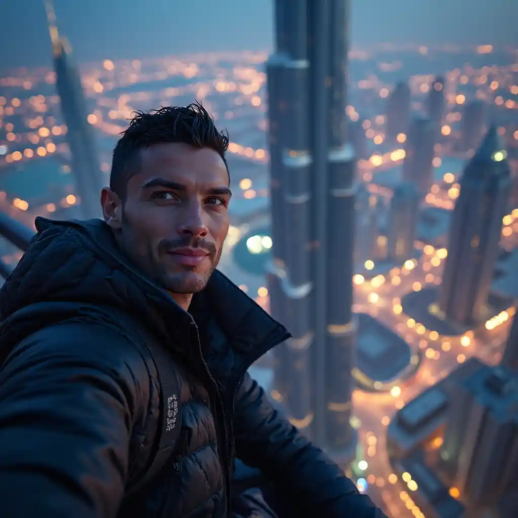 PianeerCristianio Ronaldo, Burj Khalifa'nın tepesinde bir selfie çekmeye çalışıyor