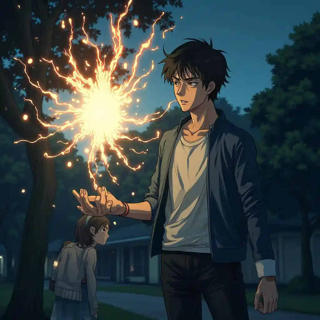 Akira Kurokawa adında genç, koyu saçlı bir üniversite öğrencisi, akşama doğru Tokyo'nun hafif aydınlatılmış bir parkında duruyor. Elini kaldırır ve parlak bir ışıkta bir hayalet iblisini dağıtan yoğun bir ruh enerjisi serbest bırakır. Akira'nın yüz ifadesi sakin ama yoğun, keskin, ince özellikleri ile. Arka planda, açık kahverengi saçlı ve geniş hazel gözlü bir kız, doğaüstü bir şeyi tam olarak kavrayamadığı için bir ağacın arkasından seyrediyor. Sanat tarzı, sahnedeki mistik gücü ve gerginliği vurgulayan dramatik aydınlatma, cesur gölgeler ve Solo'yu anımsatan canlı enerji efektleriyle çok ayrıntılıdır. "