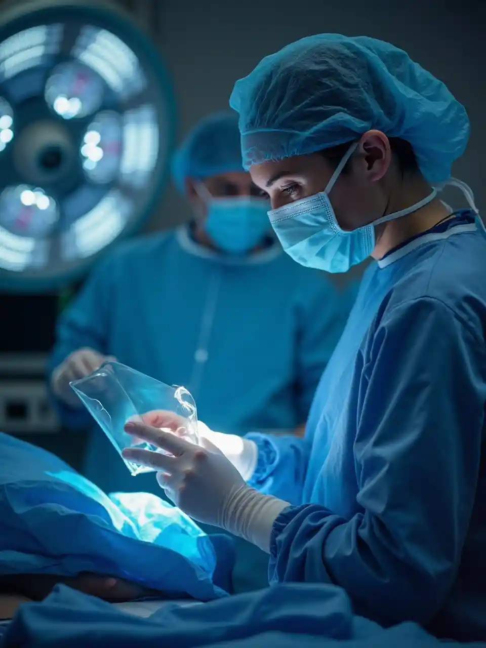 Bir hasta üzerinde yüksek teknoloji kullanan bir cerrahın imajını oluşturun